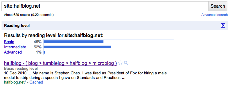 Google’s reading age tool Published 26 March 2011 at 746 × 281 in Google’s reading age tool Share & enjoy: Share on Reddit (Opens in new window) Reddit Tweet Email a link to a friend (Opens in new window) Email MoreShare on TumblrLike Loading...