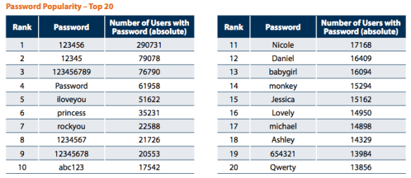 I’m afraid to say I recognise one of my passwords on that list. Fortunately it’s not something I’ve used for about 7 years and all my passwords these days are numbers, letters and special characters