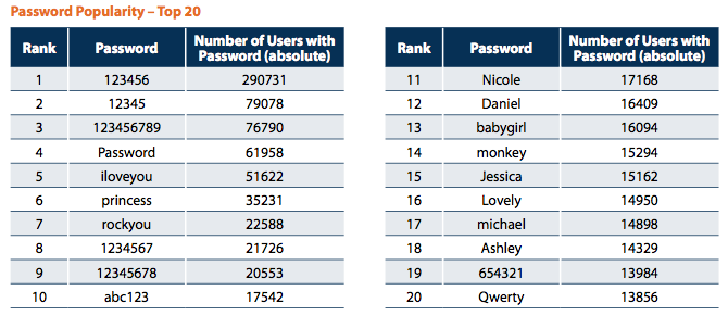 Most common passwords in the Gawker database Published 26 March 2011 at 670 × 291 in Most common passwords in the Gawker database Share & enjoy: Share on Reddit (Opens in new window) Reddit Tweet Email a link to a friend (Opens in new window) Email MoreShare on TumblrLike Loading...