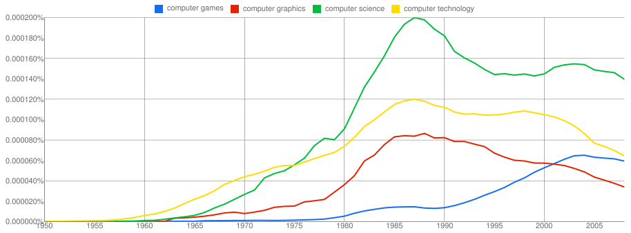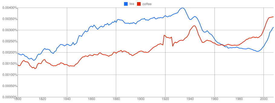 A few days ago Google launched the Google Books Ngram Viewer, a labs project that lets you compare the frequency of word use in published works, and compare these terms over time. For example, the following is a variety of common first names appearing in the English database over the last two hundred years.