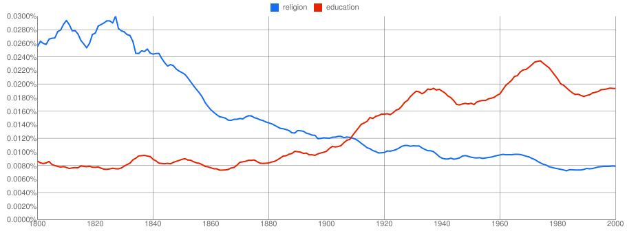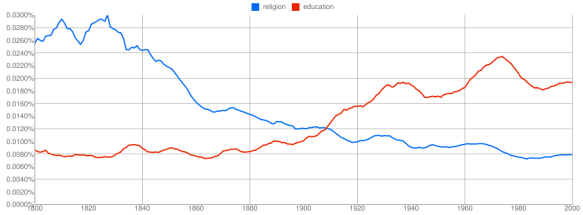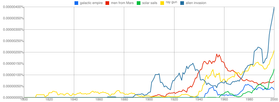 I’ve been having a bit more fun with the Google Ngram Viewer (previously). A reminder that these graphs show how much these phrases have appeared in published works over time. They are case-sensitive and I’ve used the English corpus.