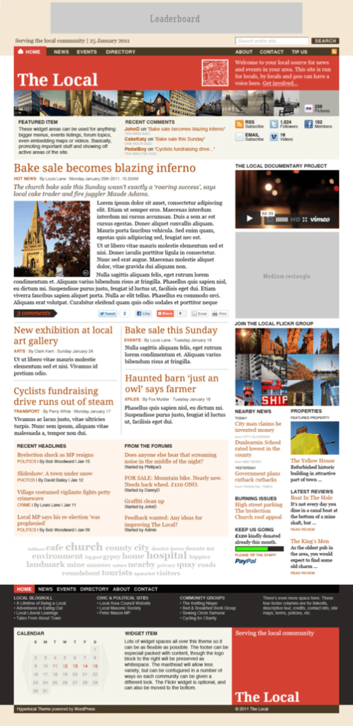 A WordPress hyperlocal news theme Published 26 March 2011 at 500 × 1029 in Adventures in WordPress theming Share & enjoy: Click to share on Reddit (Opens in new window) Reddit Tweet Click to email a link to a friend (Opens in new window) Email MoreShare on TumblrLike Loading...