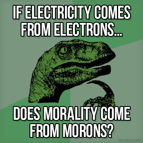 Philosoraptor on Morons Published 10 November 2011 at 500 × 500 in The wisdom of Philosoraptor Share & enjoy: Click to share on Reddit (Opens in new window) Reddit Tweet Click to email a link to a friend (Opens in new window) Email MoreShare on TumblrLike Loading...