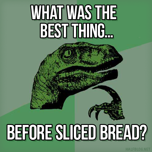 Philosoraptor on sliced bread Published 10 November 2011 at 500 × 500 in The wisdom of Philosoraptor Share & enjoy: Click to share on Reddit (Opens in new window) Reddit Tweet Click to email a link to a friend (Opens in new window) Email MoreShare on TumblrLike Loading...