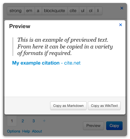 Citation bookmarklet: Preview Published 5 February 2012 at 420 × 450 in A bookmarklet for making web citations Previewing a citation. Share & enjoy: Click to share on Reddit (Opens in new window) Reddit Tweet Click to email a link to a friend (Opens in new window) Email MoreShare on TumblrLike Loading...