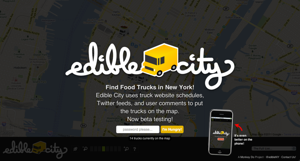 Edible City: Mapping service to find food trucks Published 18 April 2011 at 1000 × 536 in Edible City: Mapping service to find food trucks Share & enjoy: Share on Reddit (Opens in new window) Reddit Tweet Email a link to a friend (Opens in new window) Email MoreShare on TumblrLike Loading...
