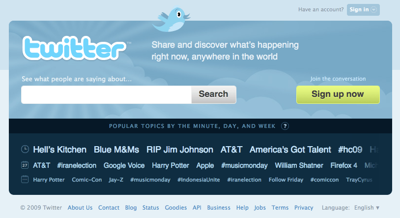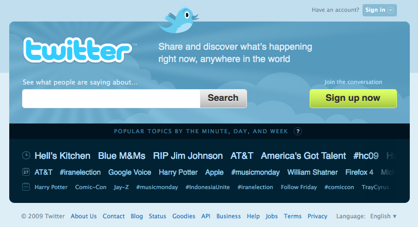 Have you seen how boring the Twitter homepage has become? Published 18 May 2011 at 814 × 443 in Have you seen how boring the Twitter homepage has become? Share & enjoy: Share on Reddit (Opens in new window) Reddit Tweet Email a link to a friend (Opens in new window) Email MoreShare on TumblrLike Loading...