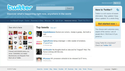 Have you seen how boring the Twitter homepage has become? Published 11 September 2011 at 500 × 285 in Have you seen how boring the Twitter homepage has become? Share & enjoy: Share on Reddit (Opens in new window) Reddit Tweet Email a link to a friend (Opens in new window) Email MoreShare on TumblrLike Loading...