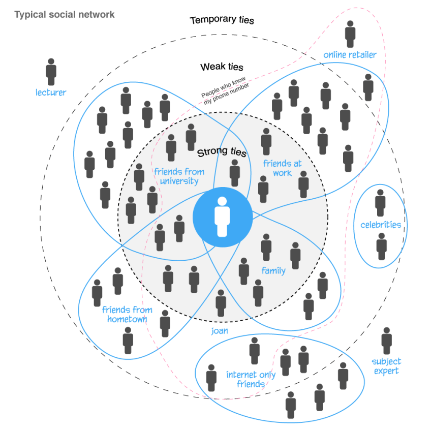 Our real social networks are complicated. Our contacts overlap. They are important to different degrees and for different reasons. Many are not friends at all. We may not want a ‘close’ family member to have our telephone number, for example, but we may want a complete stranger at an online retail store to have it.