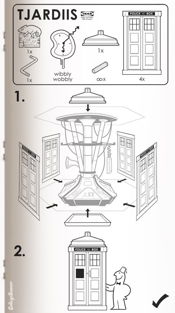TARDIS IKEA assembly instructions Published 7 May 2011 at 558 × 1000 in TARDIS IKEA assembly instructions Share & enjoy: Share on Reddit (Opens in new window) Reddit Tweet Email a link to a friend (Opens in new window) Email MoreShare on TumblrLike Loading...