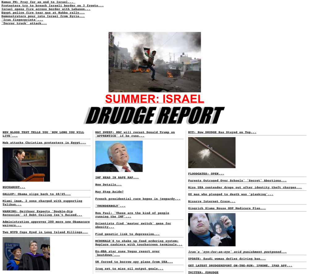 What can The Drudge Report teach web designers? Published 16 May 2011 at 1000 × 887 in What can The Drudge Report teach web designers? Share & enjoy: Share on Reddit (Opens in new window) Reddit Tweet Email a link to a friend (Opens in new window) Email MoreShare on TumblrLike Loading...